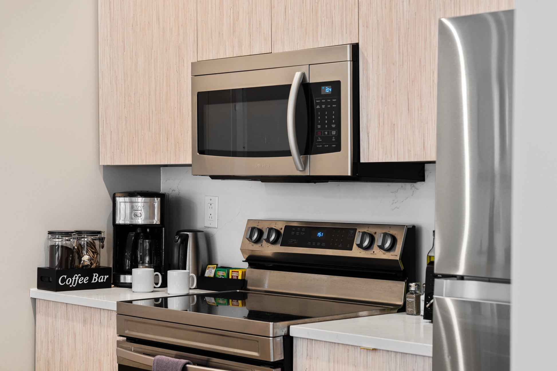The kitchens and dining areas were captured to highlight both functionality and modern design. Stainless steel appliances, contemporary cabinetry, and stylish dining setups create practical spaces for guests to prepare meals or enjoy time together during their stay.